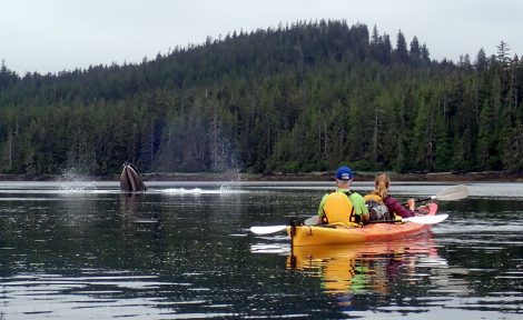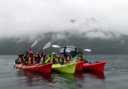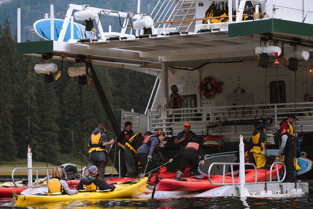 Pendant notre voyage, nous avons pu nous arrêter dans des endroits où il n’y avait aucun autre bateau. Nous avons aperçu du pont une maman ours et son petit qui s’amusaient sans se soucier de nous. Nous avons vu également des baleines qui se regroupaient pour travailler ensemble à attraper les poissons au piège et plusieurs Bald eagle avec leur regard perçant. Le bateau est muni d’une plateforme en arrière qui permet de mettre à l’eau des kayaks très rapidement. Nous en avons fait tous les jours. Nous avons aussi eu la chance de faire de la plongée en apnée et admirer les étoiles de mer et les anémones de différentes couleurs. Vous pensez que c’est seulement pour les personnes de jeunes âges, détrompez-vous, il y avait des gens de tous les âges de 13-80 ans. Nous avions 2 activités offertes par jour. Il y en a pour tous les âges et pour toutes les formes physiques. À chaque sortie, un guide part avec un petit groupe et vous apprend tout sur la nature qui nous entoure. Ils sont parfaits, gentils, attentionnés, passionnés, responsables.