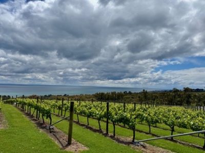 Un vignoble avec vue sur la mer. La plupart des très bons vins australiens sont issus de petites productions. Avec la limite de 1,5 litre pour le retour au Canada, désolé, je n’en ai pas pour tous ☹, mais c’est à essayer et nous avons de belles adresses pour vous !