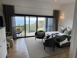 Après ces quelques heures d’exercice, nous choisissons de nous reposer sur notre terrasse, avec vue sur la mer. La chambre est très confortable.