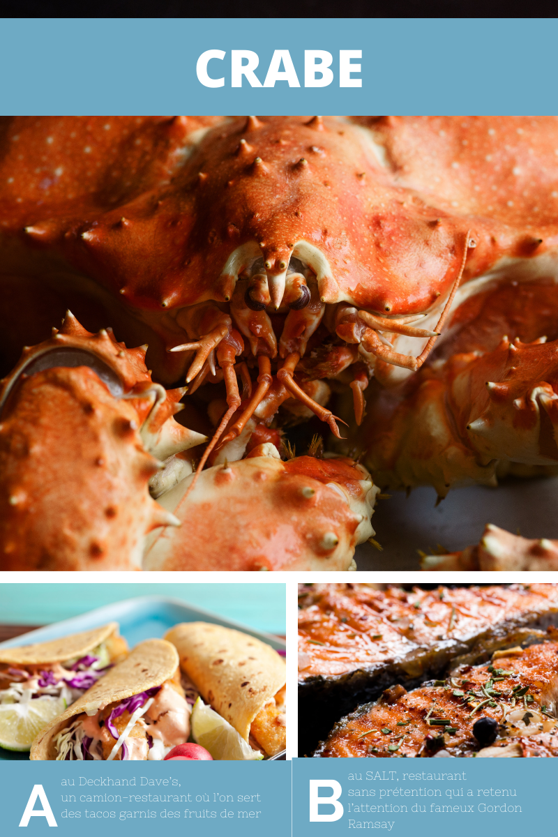 Les ingrédients locaux ne manquent pas au Deckhand Dave’s, un camion-restaurant où l’on sert des tacos garnis des fruits de mer les plus frais du sud-est de l’Alaska. Autour, l’action est à son comble et Dave se faufile dans la foule avec une assiette de tacos de sébaste épicé. Ce diplômé en chimie a laissé de côté ses rêves de médecine pour s’intéresser à la pêche, puis à la restauration; son intuition ne lui a pas menti à en juger par la vitesse à laquelle j’ai englouti mon filet de saumon sauvage pané servi avec sauce tartare.