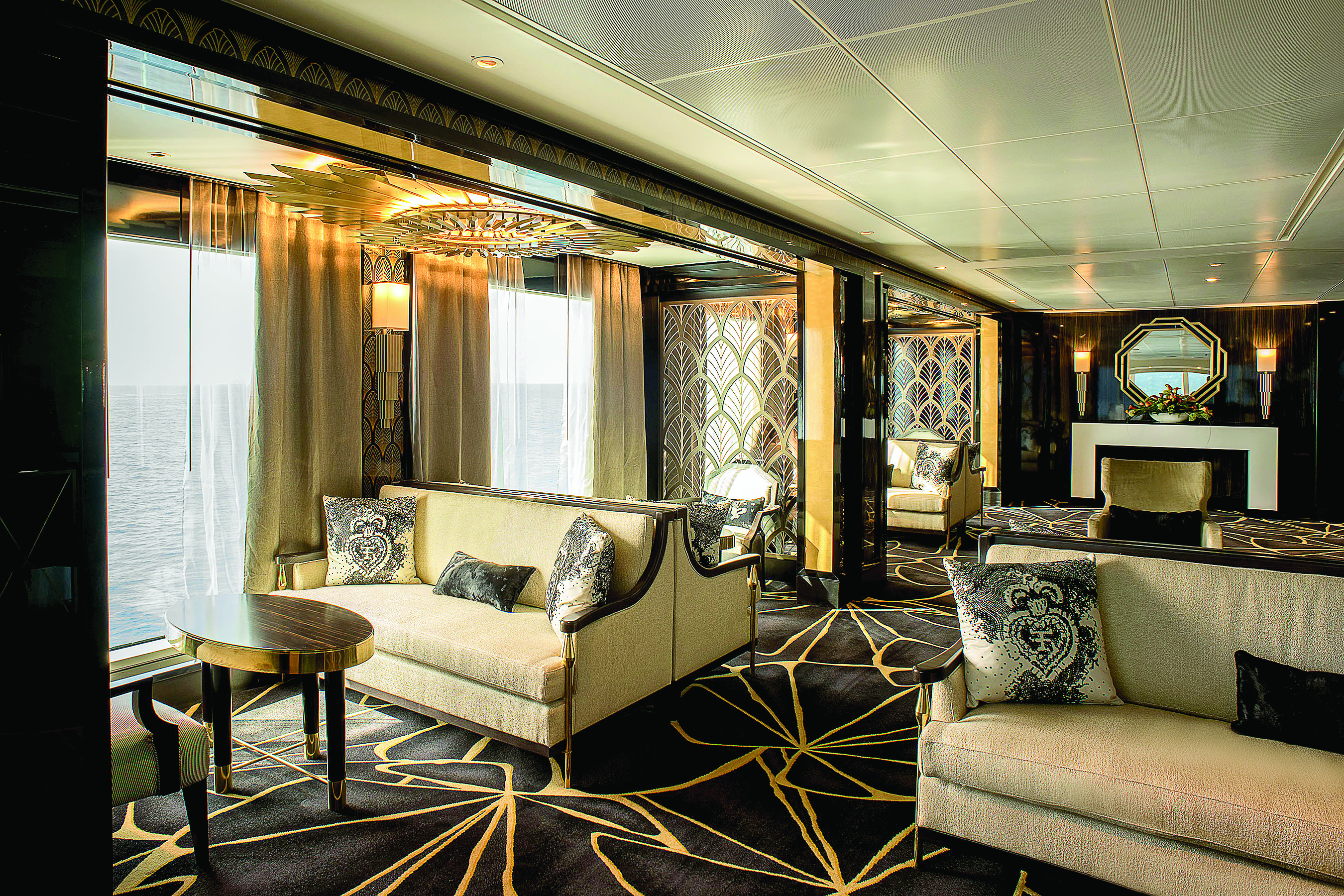 Les types de cabines pour cette croisière: Suite veranda, Suite deluxe veranda, Suite superior, Suite concierge, Suite Penthouse, Suite Seven Seas, Suite Explorer, Grand suite, Suite Master, Suite Regent.