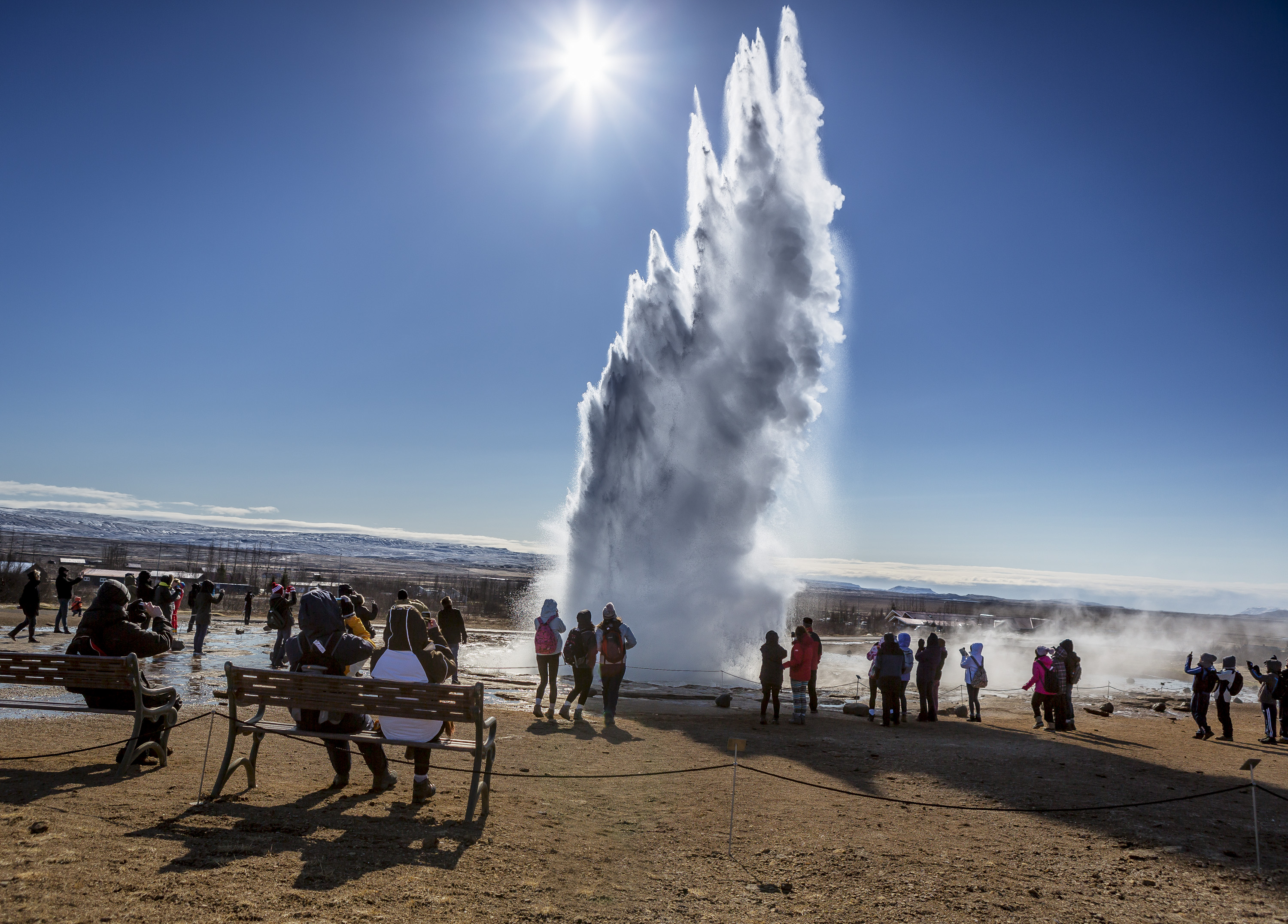 Aujourd’hui, nous parton en jeep en direction du Cercle d’Or, en direction du parc national de Þingvellir, la zone géothermique de Geysir et de la cascade de Gullfoss. Nuit dans la région de Hvalfjörður.