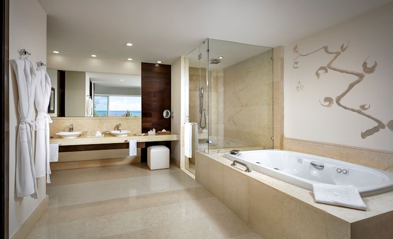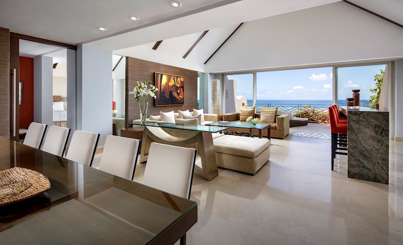 Les 539 suites de style designer sont exceptionnellement spacieuses, plus de 1100 pieds carrés chacune, toutes avec balcon et certaines avec piscines privées. Tous disposent de mini-bars bien approvisionnés, d’équipements L’Occitane, de mezcal artisanal et de machines à café Nespresso. Les salles de bains méritent une mention spéciale avec une douche en verre, des baignoires jacuzzi profondes et un intérieur en marbre. Huit restaurants, dont cinq offres gastronomiques, présentent une tournée à travers le Mexique, l’Europe et l’Asie. Cocina de Autor, aux mains des chefs de renommée mondiale Bruno Oteiza et Mikel Alonso, détient le prix AAA Five Diamond, le premier restaurant tout compris au monde à remporter cette prestigieuse distinction. Se Spa est le plus grand sanctuaire de spa de la région à plus de 90 000 pieds carrés, connu pour ses traitements mexicains authentiques, ses offres du monde entier et son voyage sur l’eau en sept étapes.