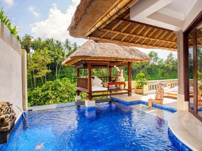 Ces villas avec piscine spacieuses et romantiques offrent une vue imprenable sur la vallée et offrent le paysage le plus pittoresque parmi les hôtels de luxe à Bali. Les espaces de vie intérieurs et extérieurs traditionnels balinais sont parfaits pour les couples à la recherche d’une lune de miel exclusive à Ubud.